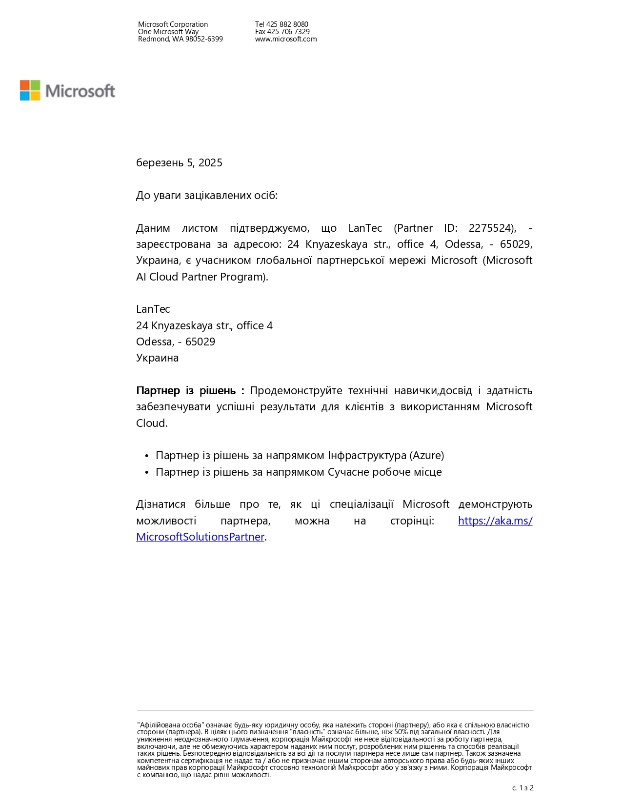 Досвідченість компанії в роботі за цим напрямом